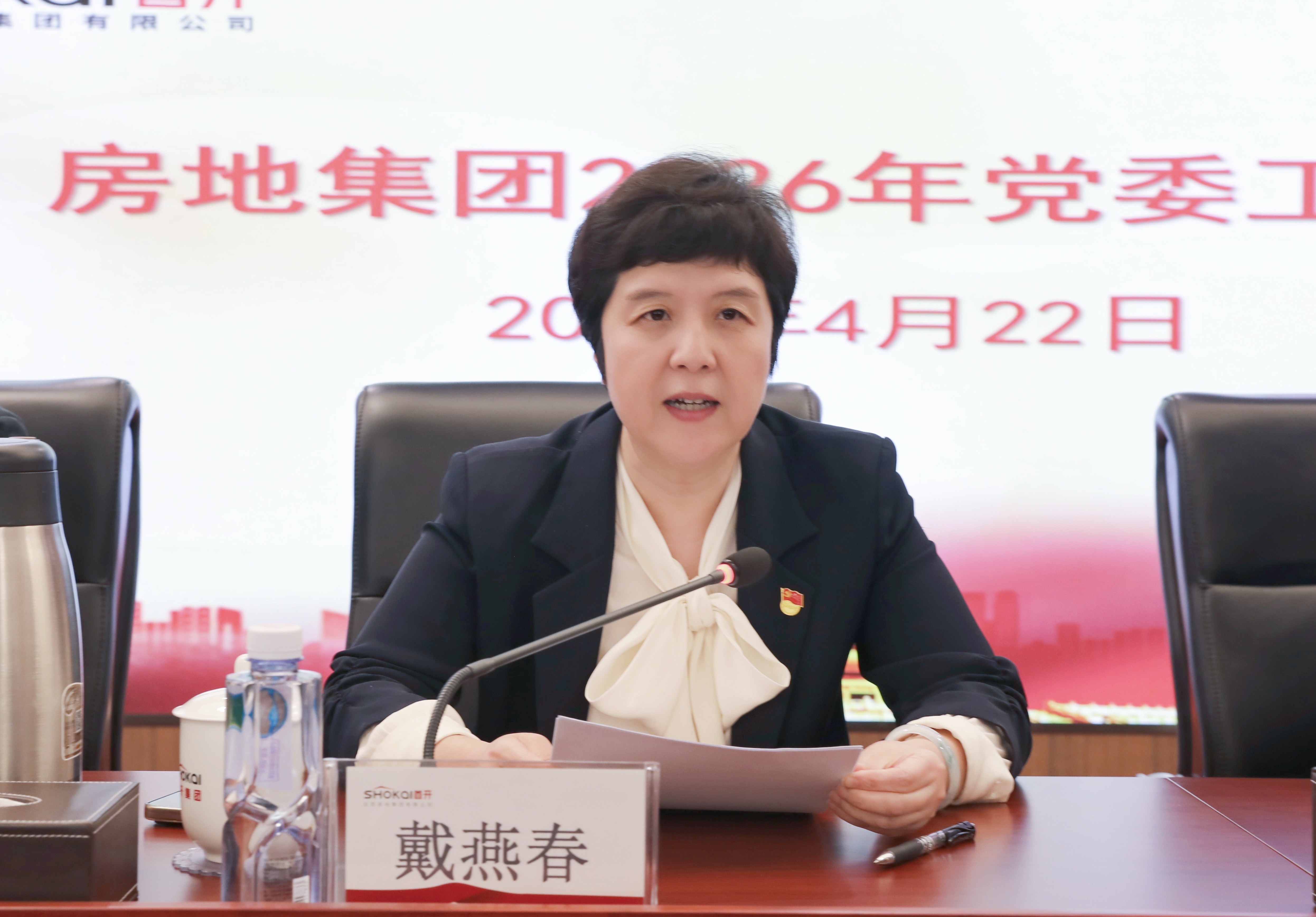 4月22日,房地集团召开2026年党委工作会,全面总结2025年党建工作,系统部署2026年重点任务。房地集团党委书记、董事长井洪涛作题为《党建领航强根基 实干奋进启新程 锚定“十五五”开局谱写高质量发展新篇章》的工作报告;党委副书记、职工董事、工会主席戴燕春通报2025年度房地集团意识形态工作情况。会议由房地集团纪委书记李亚娟主持。